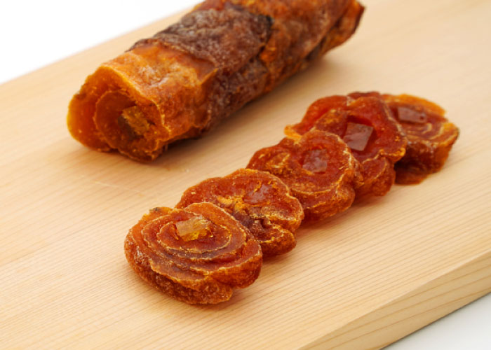 奈良県産の平種無柿で作った「蜜珠柿」を再乾燥させて丁寧に開き、