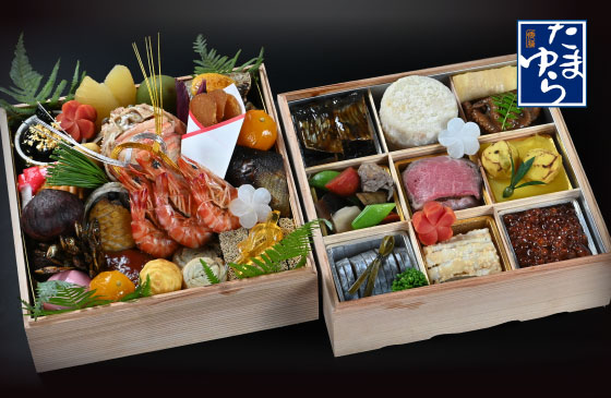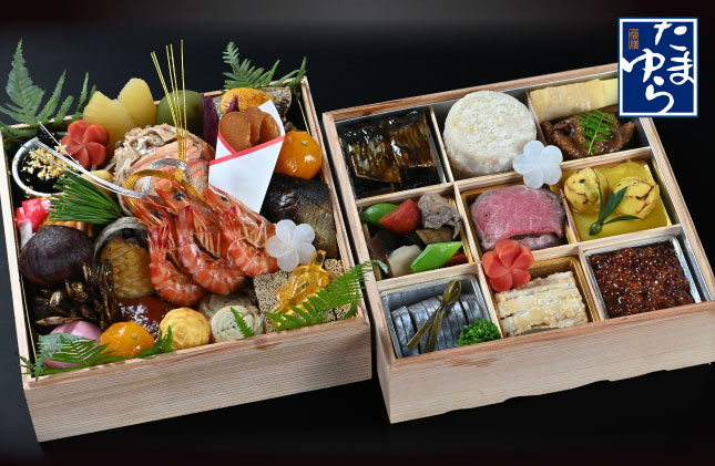 伝統の味に想いを込めて、技と心を尽くした雅やかな味わいを新しい年の幸せを願ってお重に詰めました。